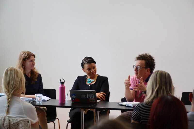 Opening roundtable to the Beyond Majority-Minority Narratives conference. From right to left: Tina Magazzini, Sunnie Rucker-Chang and Claude Cahn (Photo: L. Holzbachová)